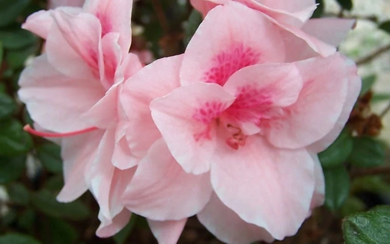 Autumn Belle Encore Azalea produces an abundance of gorgeous double flowers with soft-pink petals embellished by delicate white lacing and magenta freckles in spring, summer, and fall against a backdrop of dense evergreen foliage. The flowers are attractive to butterflies.