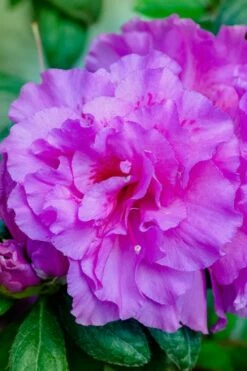 The newest introduction to the family of Encore Azaleas, ‘Autumn Majesty’ features an abundance of vibrant purple semi-double flowers with ruffled petals that blooms in spring, summer, and fall! Attractive green foliage on mounding plant to 3 feet tall and 3.5 feet wide remains bright green throughout winter. Butterflies love the flowers, and blooming branches serve very well for cutting to create stunning indoor floral arrangements.