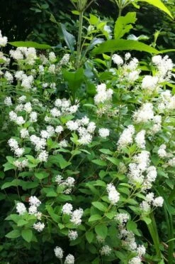 A beautiful North American native plant, New Jersey Tea (Ceanothus americanus) is an easy-to-grow perennial shrub featuring abundant snowball-shape clusters of showy, fragrant and long-lasting white to soft pink flowers in late spring and summer that stand out beautifully against the low mound of glossy, grey-green foliage. All grown up this shrub might reach 3 feet high by 4 to 5 feet wide. New Jersey Tea develops a deep tap root which makes it a fine selection for use in xeriscape gardens or on dry slopes.