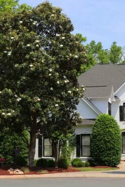 Growing 60 to 80 feet tall and 30 to 50 feet wide over time, the Southern Magnolia is ideal for use in privacy screen plantings, as a focal point specimen, in groupings or to frame the corners of tall homes and other buildings. Can also be used as espalier (trained to grow flat against a tall open wall). A fine addition to fragrance gardens, white theme gardens, native plant gardens, cottage gardens and bird and wildlife gardens.